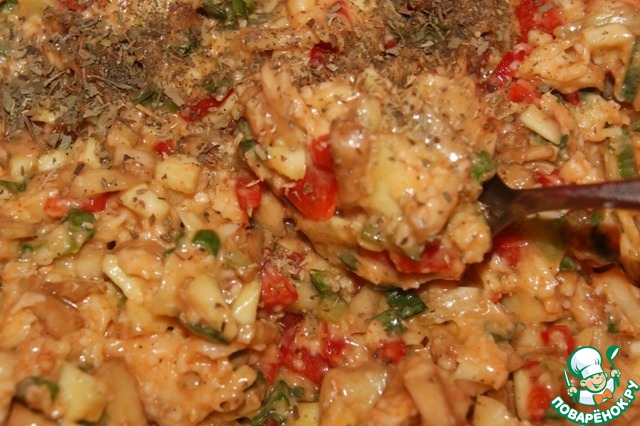 2 - добавила запаренный рис (полуготовый) и сделала за один раз в духовке