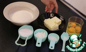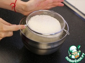Просеянную муку соединяю с крахмалом и разрыхлителем, перемешиваю и пока отставляю.