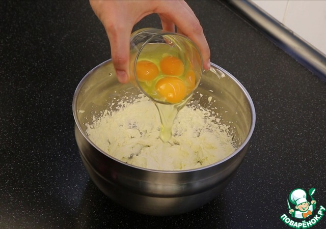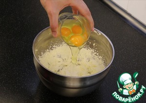 Затем по одному яйца, так же хорошо взбивая после каждого.