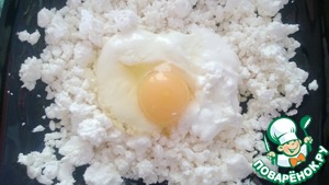 Добавляем к массе яйцо, сахар и замешиваем мягкое эластичное тесто. Отправляем в холодильник на 30 минут.