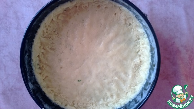 Охлажденное тесто распределяем по форме. Делаем бортики приблизительно 3-4 см.