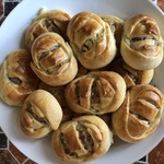Выкладываем наши заготовки на противень, застеленный пергаментной бумагой. -