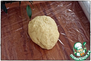 • Тесто кладём на пищевую плёнку, заворачиваем и отправляем в морозилку на 30-40 минут.