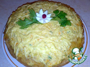 сверху посыпаем натертым на крупной терке сыром и ставим на 10-15 мин в духовку.