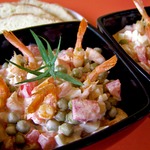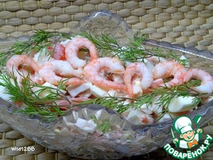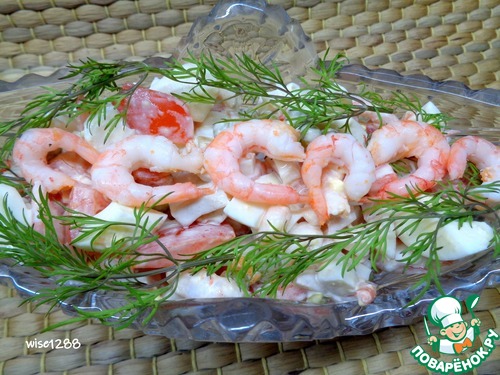 Переложить салат в салатник, оформить креветками и зеленью укропа. Приятного аппетита!!!