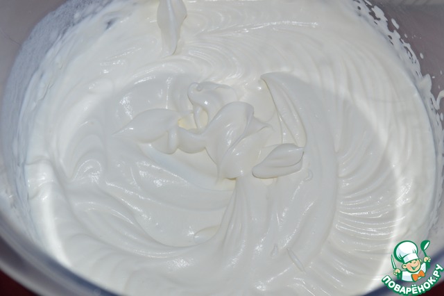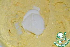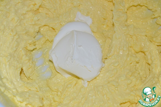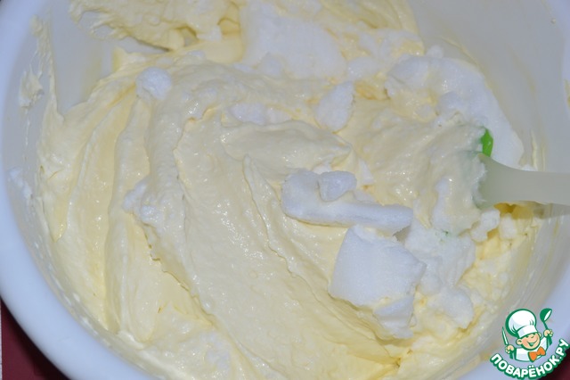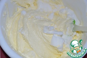 Ввести по ложке маскарпоне, взбивая на малых оборотах миксера.
