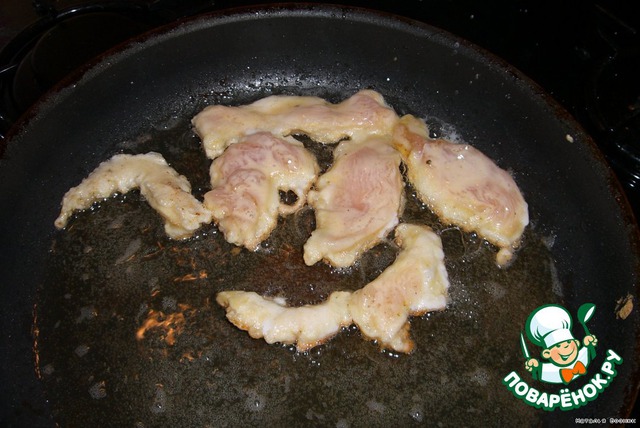 Филе нарезать полосками ..толщиной с пальчик.