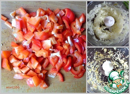 Перец порезать произвольно. Лук и чеснок измельчить.