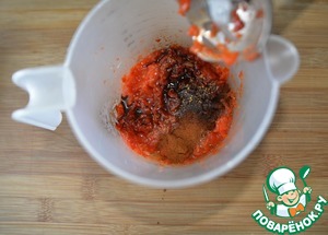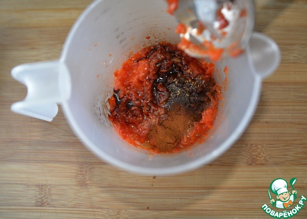 Добавляем соль, сок лимона, бальзамик, паприку и смесь перцев, пробиваем блендером.