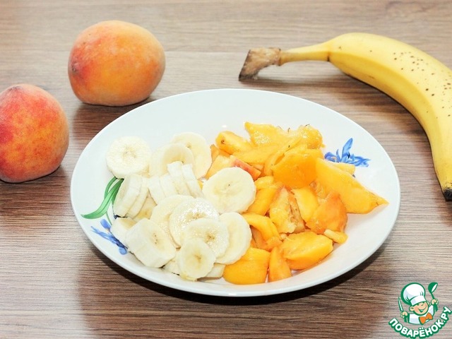 1. Очищенные бананы и персики, заранее отправьте в холодильник на 1 час. Затем порежьте.