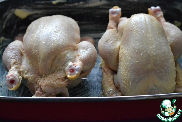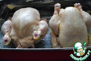 Подготовить цыплят. Посолить и поперчить снаружи и внутри.