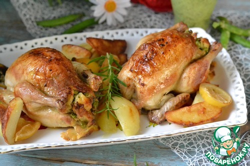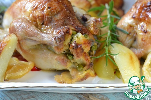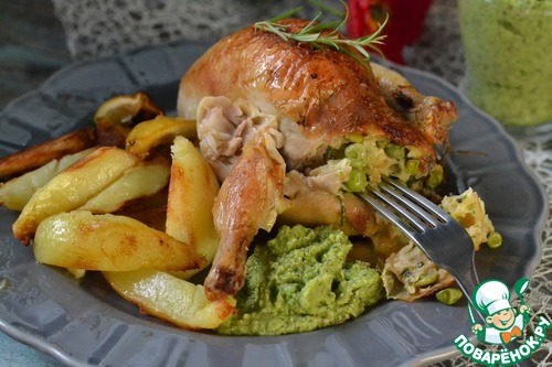 Рецепт «Фаршированные цыплята и песто из горошка»: