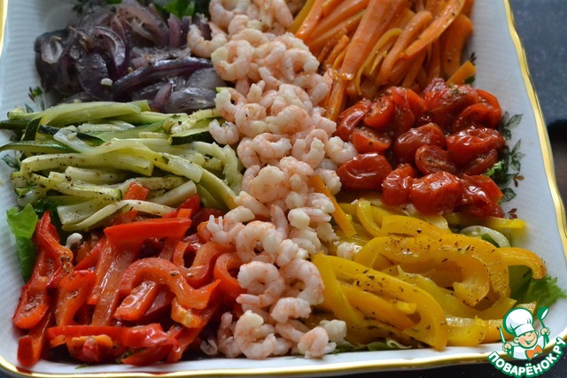 Ингредиенты для «Салат из запеченных овощей и креветок»: