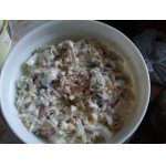 Перед самой подачей залить салат заливкой и аккуратно перемешать. Я это делаю уже на обеденном столе.