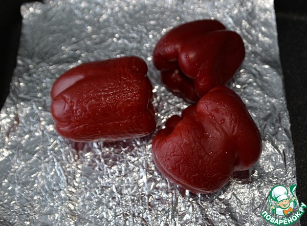Запекаем предварительно перец. Были советы делать в микроволновке, но это, поверьте, совсем другой вкус.