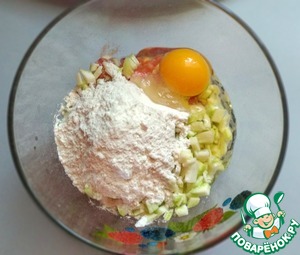 Добавить яйцо, соль (1/4 ч. л.) и муку (2 ст. л.). Хорошо перемешать.