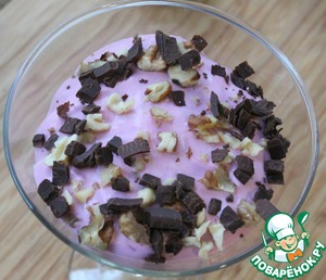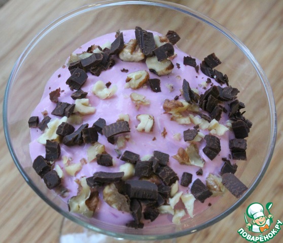 У меня осталось немного творожной массы - я выложила в бокал присыпала орешками и тертым шоколадом.