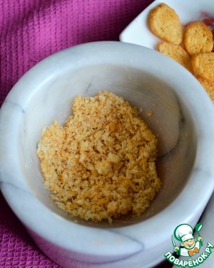 Сервировать на листьях салата, припорошив сухарной крошкой.
