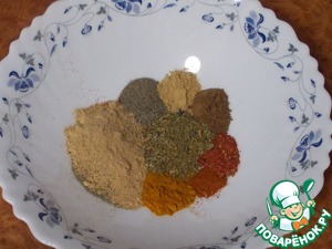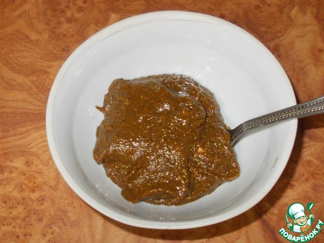 Смешиваем специи с горчицей, медом, соевым соусом и растительным маслом.