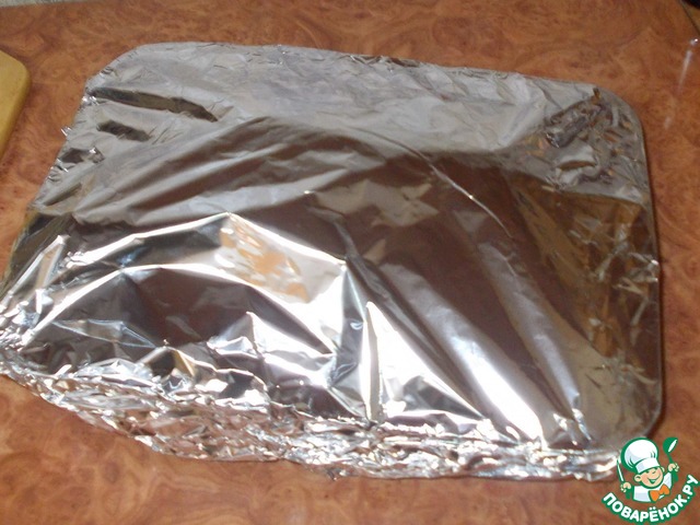 Несмотря на то, что у моей кухонной плиты довольна большая духовка, мне пришлось придумать вот такую конструкцию, чтобы утка поместилась.