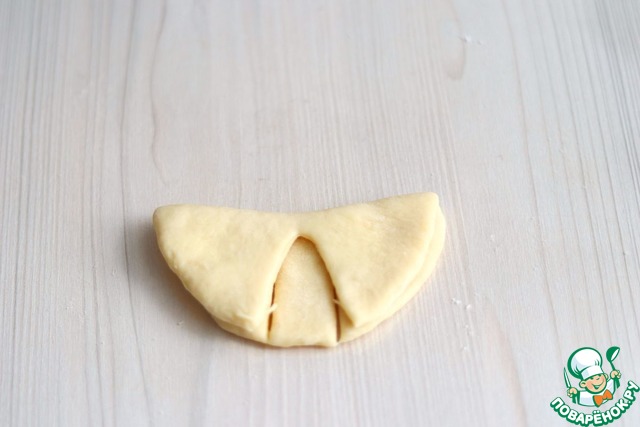 Далее каждый шарик раскатать в круг и сделать разрезы, как на фото.