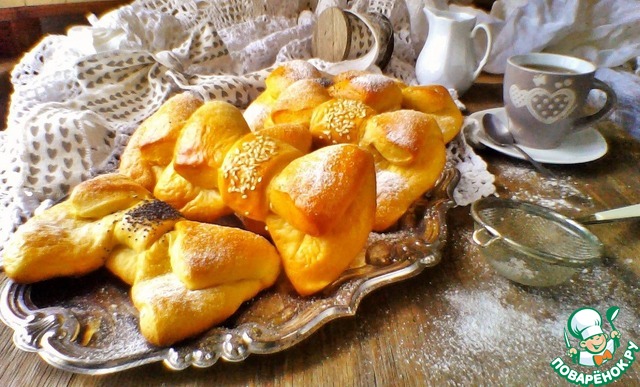 Рецепт «Домашние булочки "Бантики" с миндалем»: