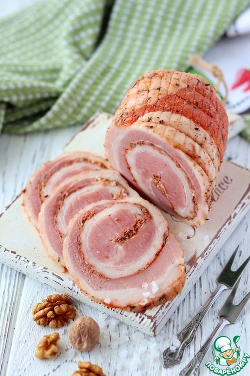 Подчеревок свернуть в рулет, натянуть формовочную сетку. Как это сделать можно посмотреть в моих рецептах: https://www.povareno k.ru/recipes/show/16 5684/