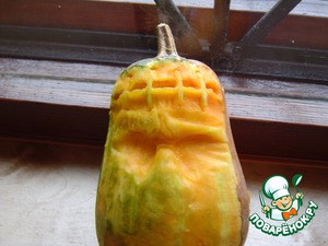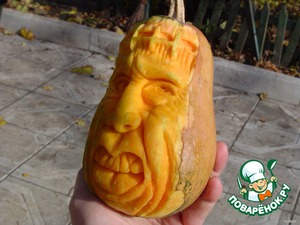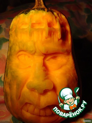 Такую тыкву режут к Хэллоуину. Страшный вид этой тыквочки после запекания с медом и орехами превращается в божественный вкус. При подаче, хорошо бы, посыпать корицей. Следуя пошаговым фото, Вы сможете вырезать маленького монстрика, порадуя своих детей и фигуркой и чудесным вкусом!