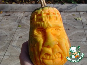 Рецепт «Резная тыква-Франкенштейн-украшение к Хеллоуину»: