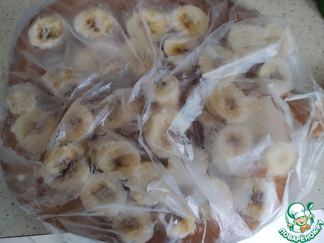 Отправьте кружочки бананов на ночь в морозилку. Если замораживаете совсем немного, тогда точно делайте это на разделочной доске и держите как минимум 2 часа в морозильной камере, затянув предварительно пищевой пленкой.