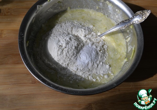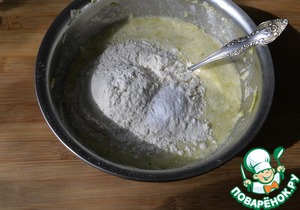 Добавляем муку с разрыхлителем, перемешиваем.