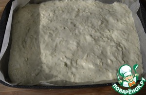 Противень застилаем пекарской бумагой, смазываем маслом. Кладём тесто и отправляем в духовку. Выпекаем при 190 градусах 30 минут. Готовый рулет переворачиваем на доску, снимаем бумагу, даём остыть.