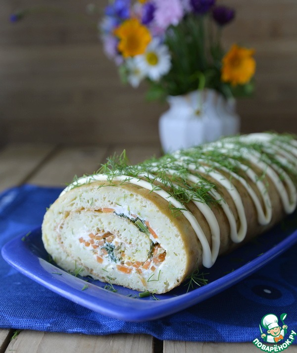 Рецепт «Рулет из цуккини с пикантной начинкой»: