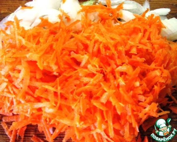 Натереть морковь.