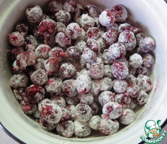 Ягоды вымыть, обсушить. Удалить у вишни косточки; у крыжовника - хвостики, крупный можно разрезать.