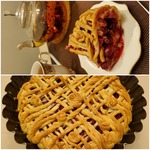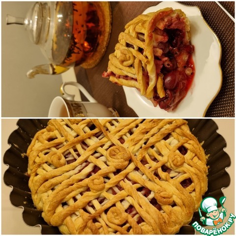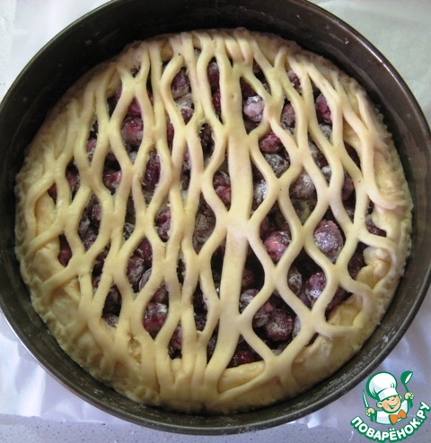 Из 1/3 чуть охлажденного теста сделать решетку для верха пирога. Я воспользовалась специальным роликом для решеток, можно сделать просто из полосок теста.