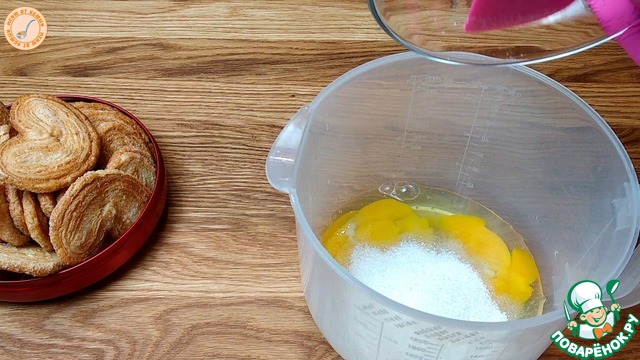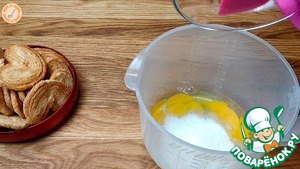 • Взбиваем яйца, сахар, ванильный сахар, соль