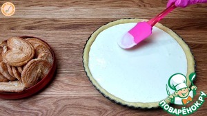 • Смешиваем творог, сметану, яйца, сахар, ванильный сахар, крахмал. Заливаем в форму поверх теста