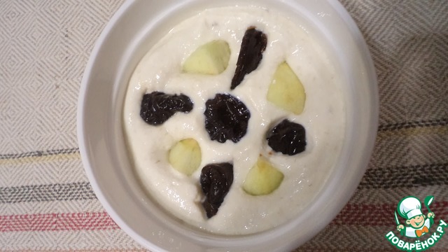 Вкусная, нежная, полезная! В меру сладкая благодаря банану, сладкому яблоку и черносливу, поэтому сахар не добавлять! Сметана и грецкие орехи добавляют богатство вкусов! Все ингредиенты гармонично сочетаются и доставят удовольствие любому гурману!