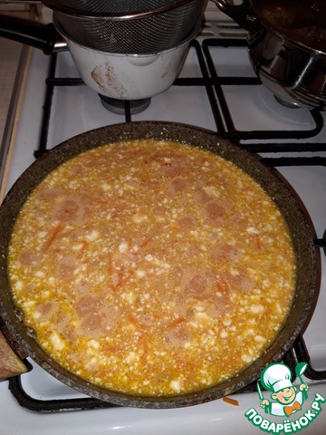 Подготовьте соус - как обычно обжарьте лук с морковью, потом добавьте майонез и кетчуп, и на последок - бульон. У меня был готовый замороженный, стоял в морозилке ждал своего часа, отлично получилось.