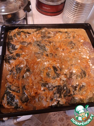 Когда соус закипел, заливаем голубцы в противне и ставим в разогретую до 180 -200 духовку на часок