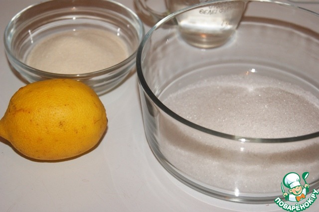 Поместить в емкость сахар, желе (порошок), лимонный сок и цедру.