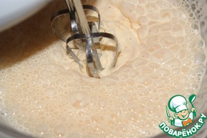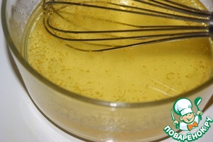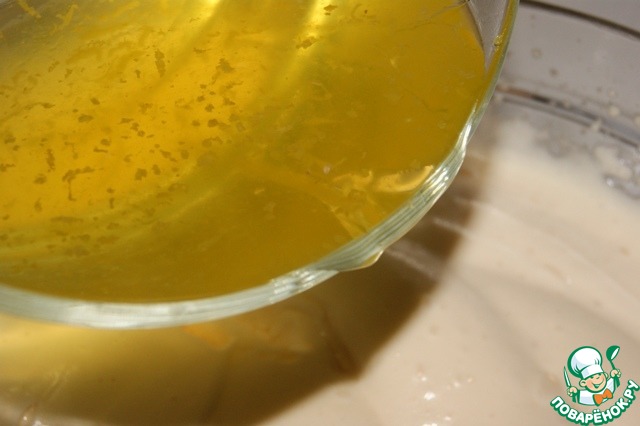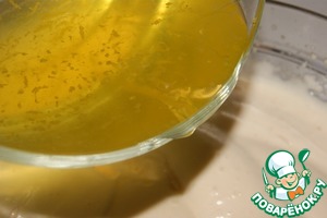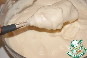 Тонкой струйкой и постоянно мешая лопаткой, ввести желейную смесь.