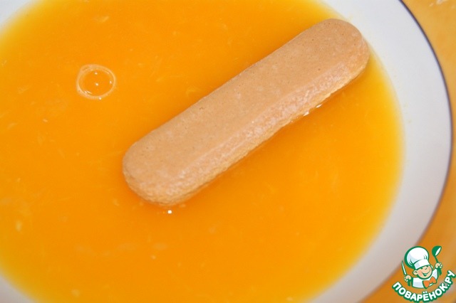 Обмакнуть буквально на пару секунд савоярди в сок.