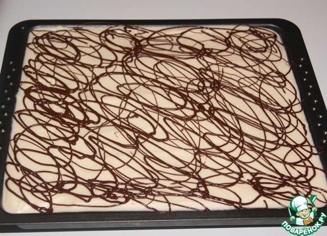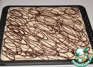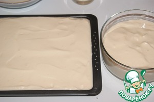 Сверху разместить крем, разровнять и отправить в холодильник на 4-5 часов. У меня остался крем и приготовила еще небольшую порцию десерта. Так что можно свободно брать форму 30Х25 см. Естественно, что печенья нужно будет больше.