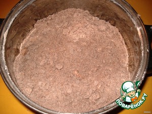 Для теста смешать муку, сахарную пудру, какао и растереть в крошку с маслом