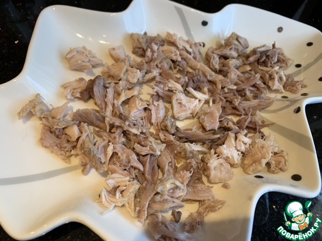 У кролика отделите все кости, филе нарежьте соломкой. Выложите в форму для заливного.