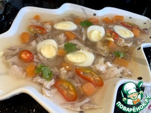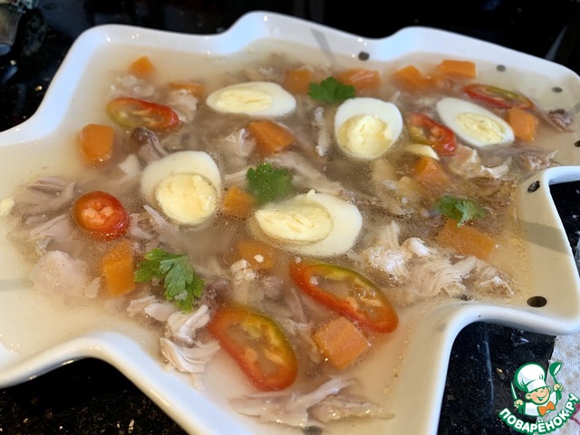 Аккуратно залейте бульон в форму и поставьте в холодильник до полного застывания.