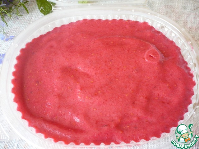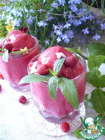 Этот экспресс - сорбет готовится быстро, просто и без лишних затрат. Получается очень вкусное ягодное мороженое - идеальный летний десерт. У нас наступило прекрасное жаркое лето, фотографировала при 35 градусах в тени - сорбет в миг начал таять.