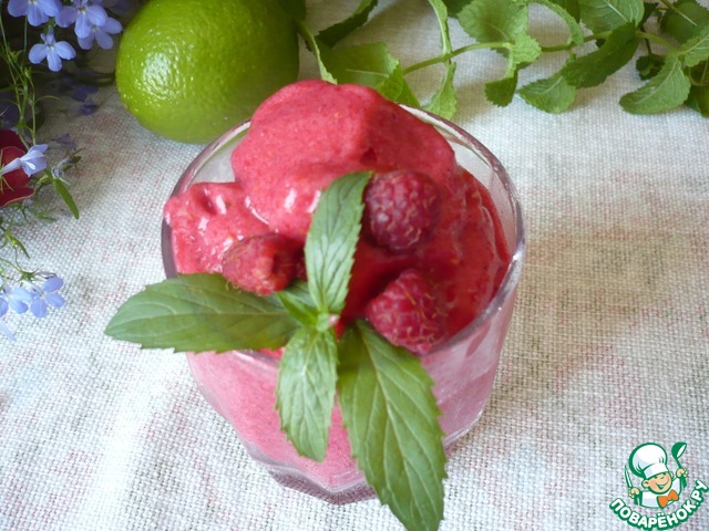 Переложите сорбет в креманки, украсьте листиками мяты (я украсила еще и кондитерскими посыпками).